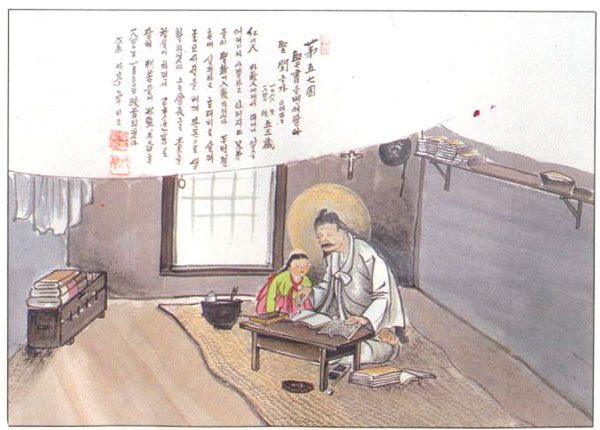 인천 함박이의 양반가 출신으로 인천, 부평, 서울(모화간), 양지 등 여러 곳을 전전하면서 두 번씩이나 부인과 사별하고 홀아비로 생활하였고 교리서를 베껴서 팔아 생계를 이어갔다.